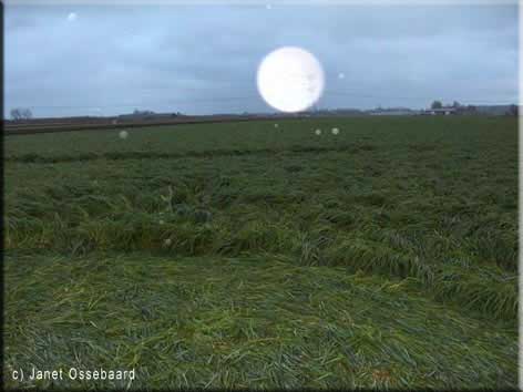 Update 11-05-2005: Op onderstaande foto's zijn lichtbollen te zien die in de grascirkels van Hoeven gefotografeerd zijn. Op de website van Janet Ossebaard zijn meer foto's te zien.