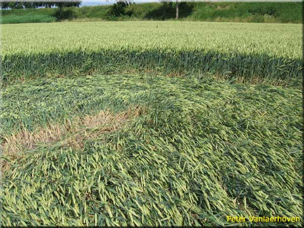 Report from Peter Vanlearhoven This crop circle in Andel is a hoax. There were a lot of stalks which were damaged and at some places the wheat was pressed in the soil. The circle looks like some kind of logo.