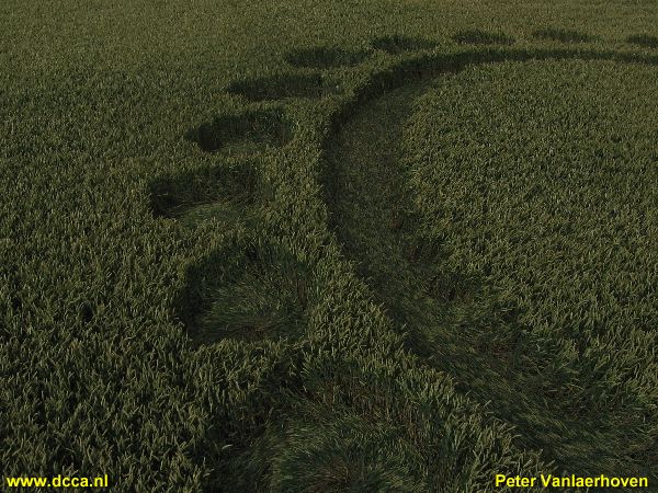 The third dutch cropcircle has been found in Zevenbergen, again in the southwest part of Holland. Robbert van den Broeke discovered this formation. He had a strong feeling that he had to drive to this field. Together with a friend, the both saw a light hanging above the formation.